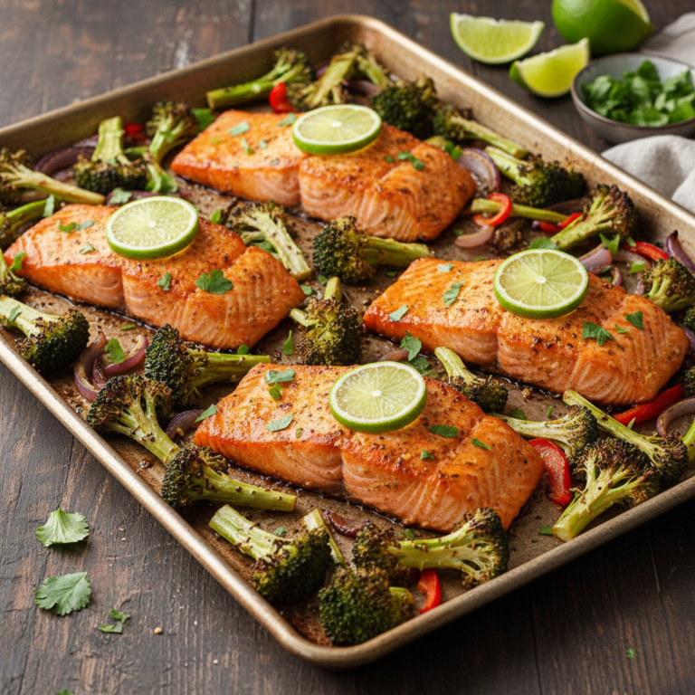3. Roast together. Bake for 15 to 18 minutes until the salmon flakes easily and the broccoli has crispy, golden edges. Squeeze fresh lime juice over everything before serving.