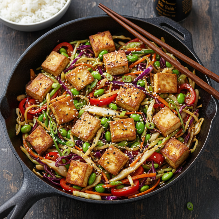 Return the tofu to the pan. Stir together the sauce ingredients, pour them in, and toss everything together until glossy and hot.